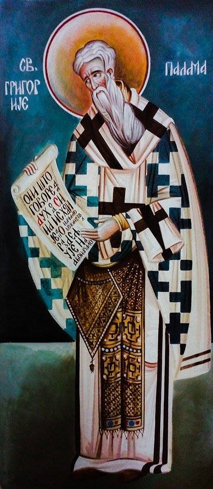 Свећњаче Православља, утврђење Цркве и учитељу, доброто монаха, несавладиви заштитниче богослова, чудотворче Григорије, похвало Солуна, проповедниче благодати, моли се непрестано за спасење душа наших. (тропар)